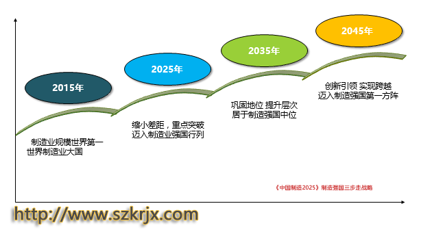 從目標上來看,德國期望借助“工業4.0”繼續領跑全球制造業,保持德國制造業的全球競爭力,抗衡美國互聯網巨頭對制造業的吞并。而在2015年3月的全國“兩會”期間,工業和信息化部部長苗圩首次公開披露了《中國制造2025》的制定情況,表示中國大約需要用三個十年左右的時間,完成從制造業大國向制造業強國的轉變,并提出了“三步走”的戰略。《中國制造2025》是戰略的第一步:第一個十年期行動綱領,它是一個路線圖,有具體的時間表——通過實施《中國制造2025》規劃,用十年的努力,讓中國制造業進入全球制造業的第二方陣。